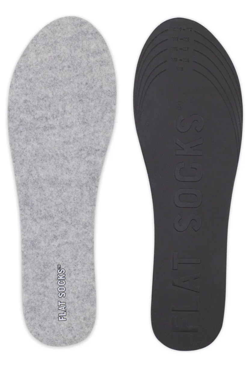 FLAT SOCKS create a moisture-wicking barrier that saves your shoes from becoming a stinky swamp! The underside is a super grippy textured foam surface. These things seriously don't budge!